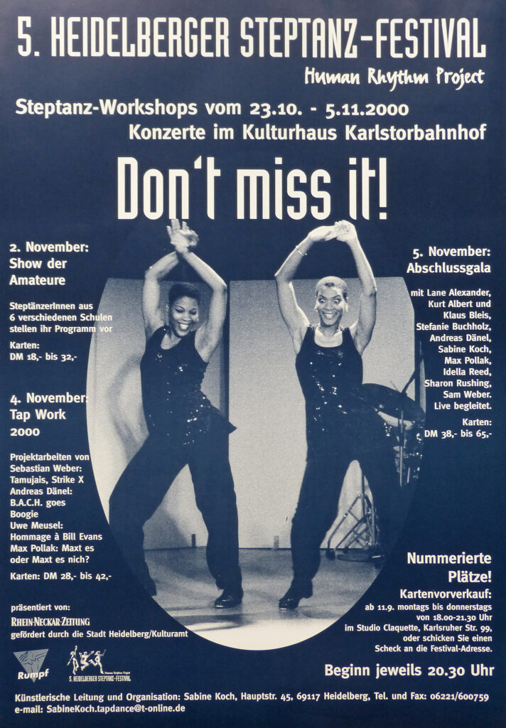 Das Studio Claquette musste leider Ende Juli 2025 seine Türen schließen. Dennoch geht der Steptanz in Heidelberg weiter. In Kürze können wir auf diesen Seiten Ort und Zeitpunkt der Kurse bekanntgeben.